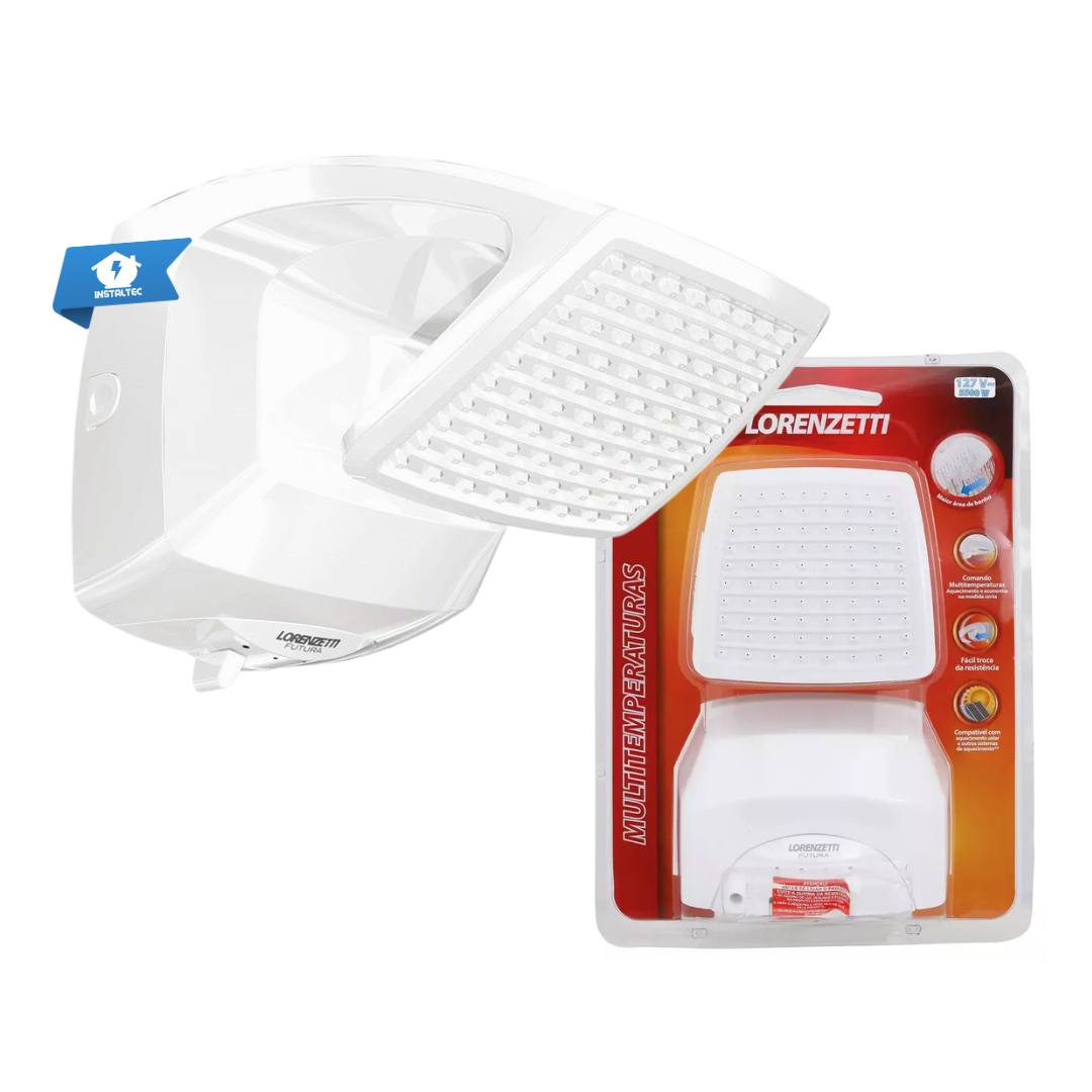 A Ducha Futura Multitemperaturas da Lorenzetti traz ao seu banheiro um design contemporâneo. potência ideal e funcionamento confiável. Com 5 500 W em 127 V. aquece rapidamente a água mesmo em locais com baixa pressão (mín. 1 m.c.a.). oferecendo um banho personalizado com ótimo custo-benefício.