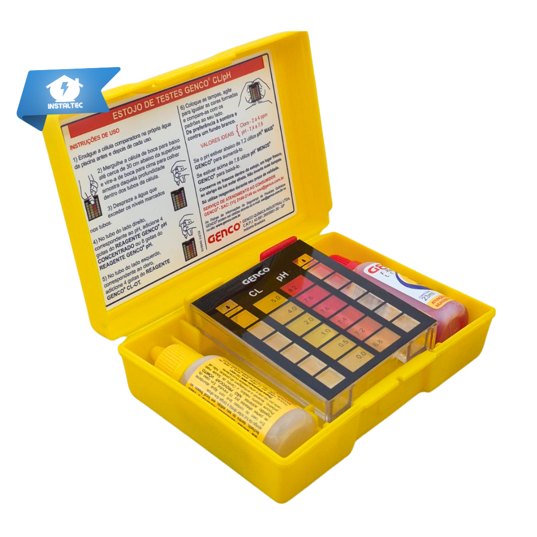 Mantenha a água da sua piscina sempre cristalina e segura com o Estojo Kit de Análise de Cloro Livre e pH Genco. Ideal para uso residencial ou profissional. este kit permite monitorar com precisão os níveis de cloro e pH da água. garantindo um ambiente saudável para todos.